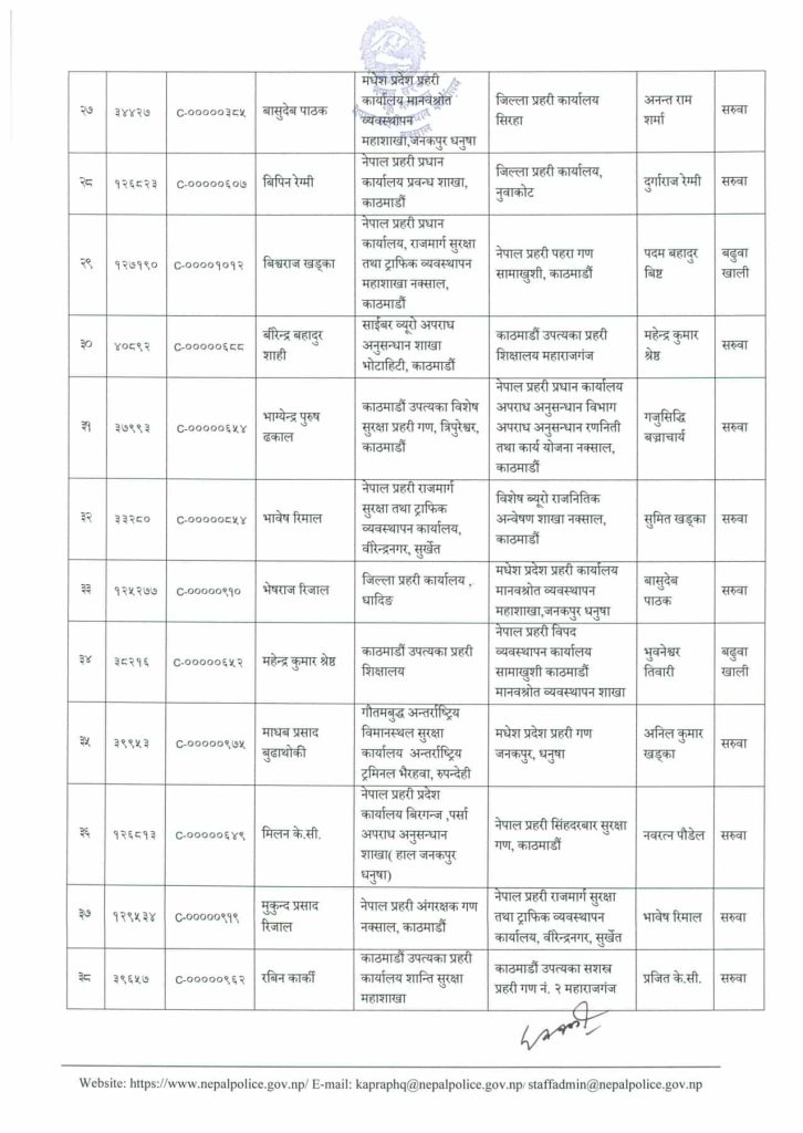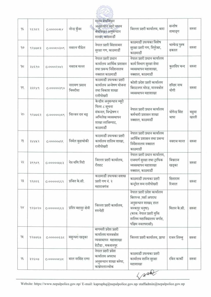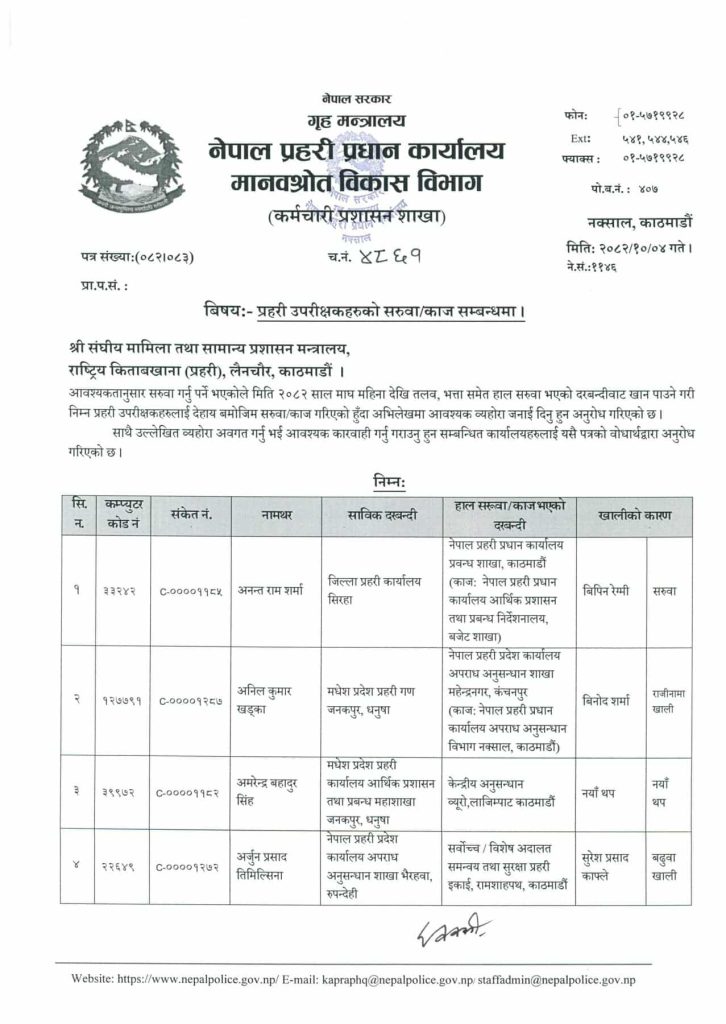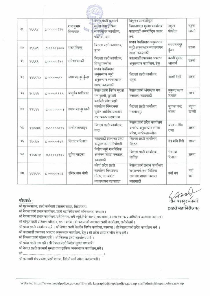 नेपाल प्रहरीका ४८ एसपीको सरुवा, झापामा बसुन्धरा खड्का