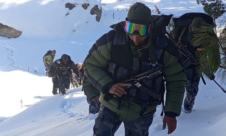 हिउँले ढाकिएको छाङ्रूमा पहरा गर्दै सशस्त्र