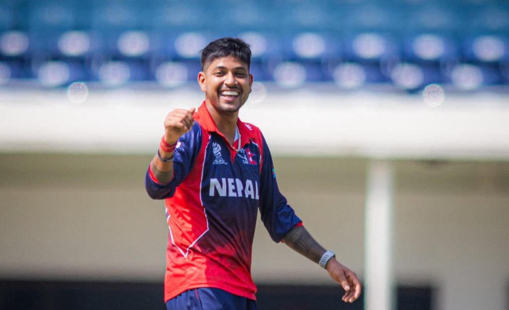 छैटौं ओभरको पहिलो बलमै सन्दीपले टम ब्यान्टनलाई एलबिडब्लु धरापमा पारे।