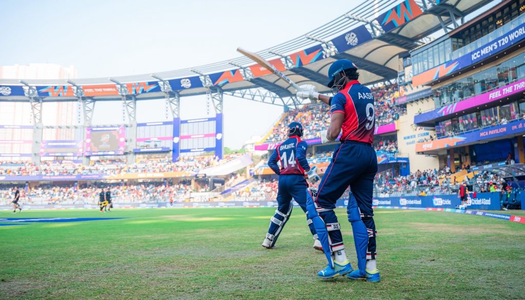 मुम्बईको वानखेडे रंगशालामा नेपालले ३.५ ओभरमा आशिफ शेख र ५.३ ओभरमा कुशल भुर्तेल आउट भएका हुन्।