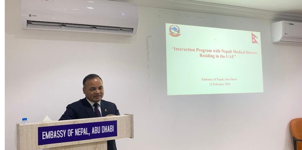 काठमाडौँ । संयुक्त अरब इमिरेट्स (युएई)को आबुधावीस्थित नेपाली दूतावासले नेपाली श्रमिकले भोग्नुपरेका शारीरिक तथा मानिसक समस्यामा केन्द्रित रहेर अन्तरक्रिया सम्पन्न गरेको छ । श्रमिकहरुले भोग्नुपरेका शारीरिक तथा मानसिक स्वास्थ्य समस्या र तिनीहरूको समाधान एवं रोकथामका लागि अपनाउनुपर्ने उपायहरुका बारेमा नेपाली चिकित्सकहरुसँग अन्तरक्रिया गरिएको दूतावासले जनाएको छ ।