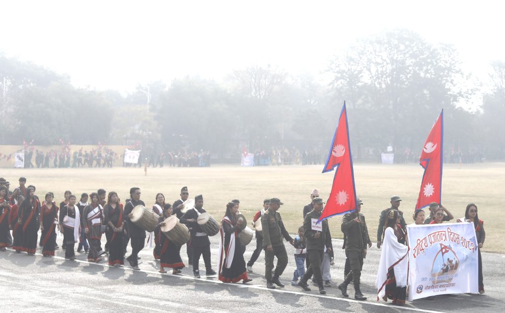 टुँडिखेलमा आयोजित विशेष कार्यक्रममा राष्ट्रपति पौडेल, उपराष्ट्रपति रामसहाय प्रसाद यादव, प्रधानमन्त्री सुशीला कार्कीलगायत संवैधानिक अंगका प्रमुख र विशिष्ट व्यक्तिसँगै कूटनीतिक नियोगका प्रमुखको सहभागिता रहेको छ ।राष्ट्रिय प्रजातन्त्र दिवसको अवसरमा सैनिक मञ्च , टुँडिखेलमा बिहीबार विशेष समारोह आयोजना भएको हो ।