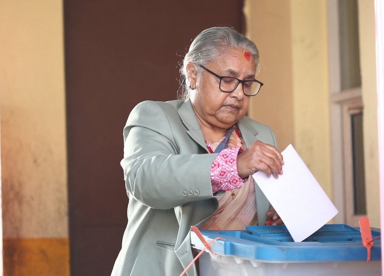 काठमाडौँ, २१ फागुन : प्रधानमन्त्री सुशीला कार्कीले काठमाडौँ क्षेत्र नं ५ स्थित धापासी निमावली फैमालचुली मतदान केन्द्रबाट मतदान गरेकी छन् ।