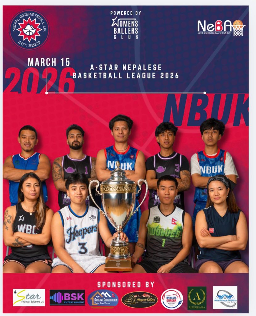 बेलायतमा रहेका नेपाली समुदायबीच बास्केटबल खेलको विकास र प्रवद्र्धन गर्ने उद्देश्यसहित पाँचौं संस्करणको ‘ए स्टार नेपाल बास्केटबल लिग २०२६’ आगामी मार्च १५ देखि सुरु हुने भएको छ। प्रतियोगिता नेपाल बास्केटबल यूकेको आयोजनामा तथा ए स्टार फाइनान्सियल सलुशन्सको सहकार्यमा सञ्चालन हुन लागेको हो।