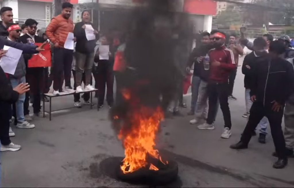 अनेरास्ववियुले पूर्वप्रधानमन्त्री समेत रहेका ओलीलाई तत्काल रिहा गर्न माग गर्दै टायर बालेर प्रदर्शन गरेको हो।