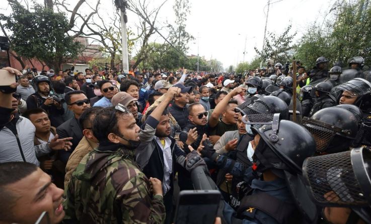 एमाले अध्यक्ष केपी शर्मा ओली पक्राउको विरोधमा माइतीघरबाट नयाँ बानेश्वरतर्फ अगाडि बढिरहेको एमाले कार्यकर्ता र प्रहरीबीच झडप भएको हो ।
