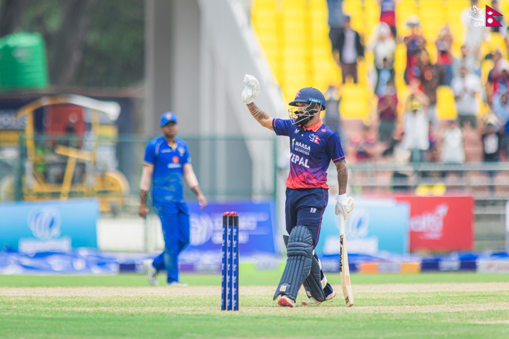 दीपेन्द्र सिंह ऐरीले ७५ रन जोडे। दबाबमा परेको नेपालका लागि दीपेन्द्रले सानदार ब्याटिङ गर्दै लक्ष्य उकासे।