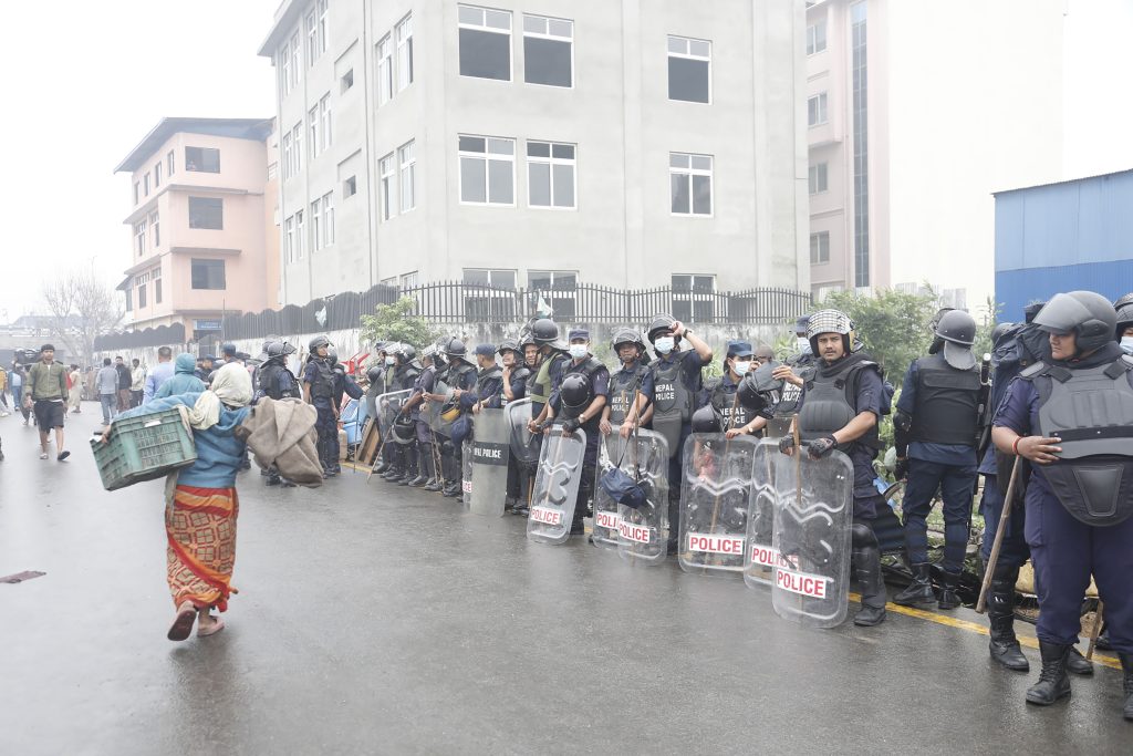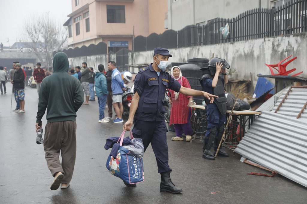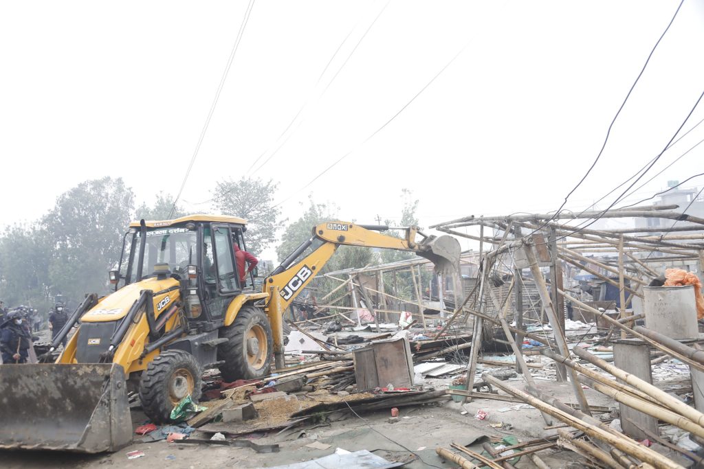 आज बिहानैदेखि बस्तीमा भक्तपुरबाट खटिएका जनपद प्रहरी र सशस्त्र प्रहरी परिचालन गरेर संरचना भत्काउन थालिएकाे हाे ।