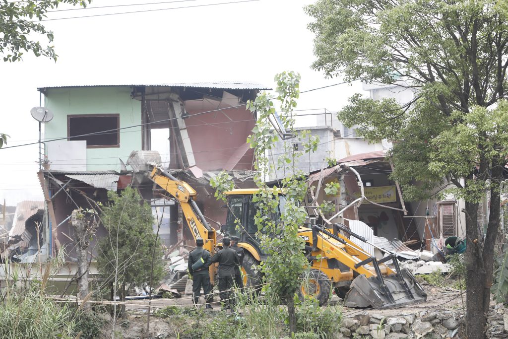 गैरीगाउँ–सिनामङ्गल क्षेत्रमा घरटहरा हटाउने काम जारी