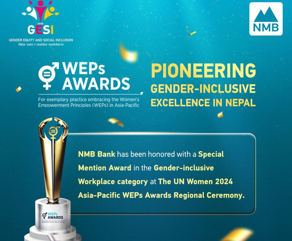 एनएमबि बैंकलाई एसिया प्यासिफिक WEPs अन्तर्गतको लैङ्गिक समावेशी कार्य स्थलको अवार्ड प्रदान