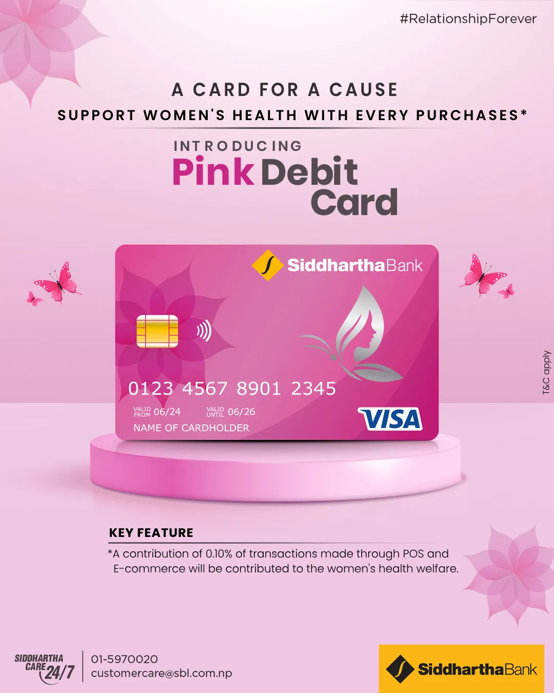 सिद्धार्थ बैंकले महिला स्वास्थ्यलाई लक्षित गर्दै सञ्चालनमा ल्यायो ‘पिंक डेबिट कार्ड’