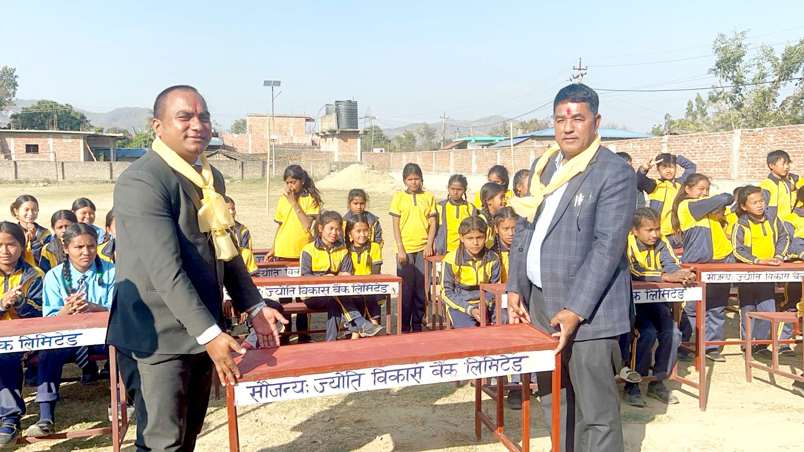 ज्योति विकास बैंकद्वारा सिराहाकाे श्री आधारभूत विद्यालयलाई डेस्क बेञ्चहरु प्रदान