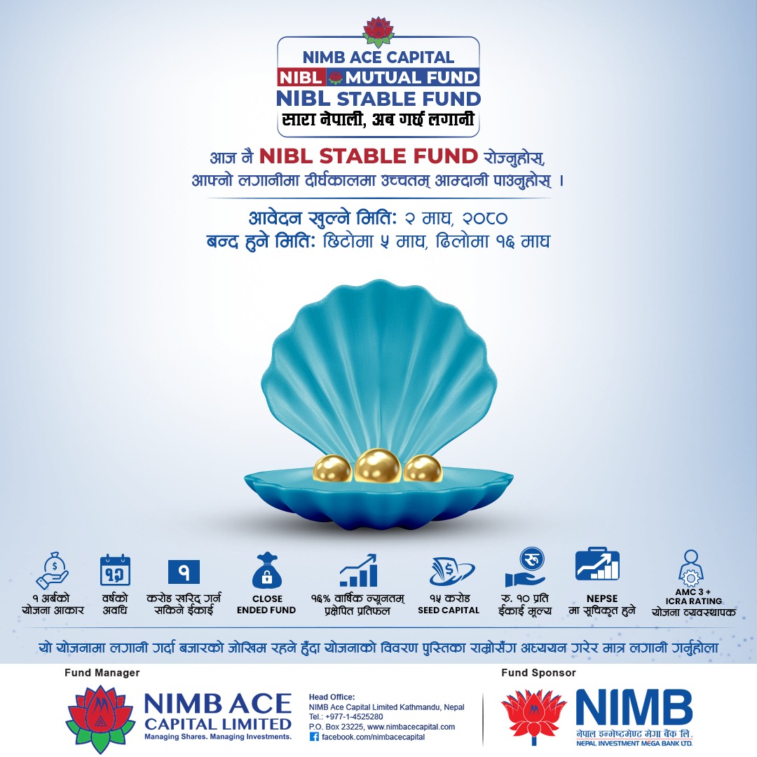 आजबाट ‘एनआईबिएल स्टेवल फण्ड’को इकाई बिक्रीमा, वार्षिक १६ प्रतिशतभन्दा धेरै प्रतिफल