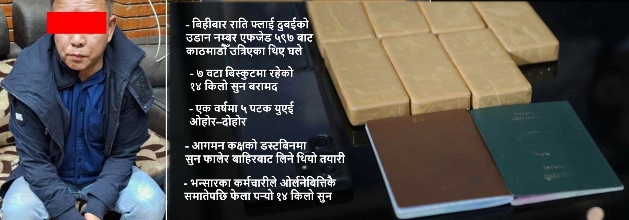 विमानस्थलबाट यसरी समातियाे १४ किलो सुन