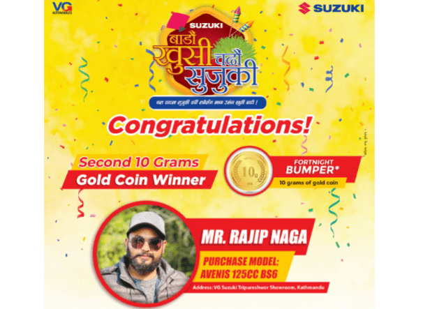 ‘बाडौं खुशी चढौं सुजुकी’ योजनमा भक्तपुरका राजिप नागाले जिते सुनको सिक्का