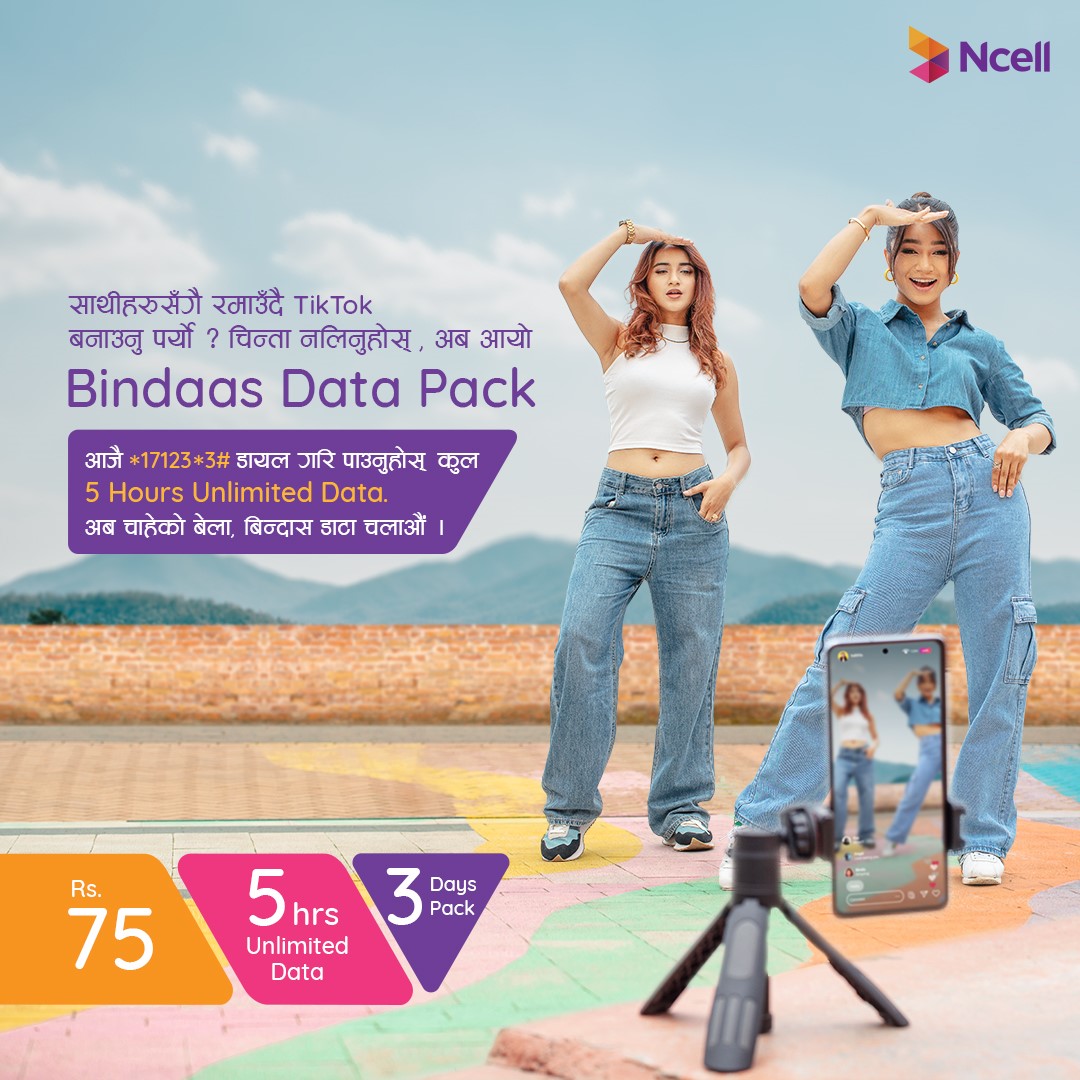 एनसेलले ल्यायो ‘बिन्दास डेटा प्याक’, यस्ता छन् सुविधा