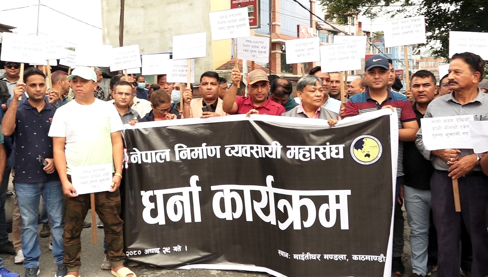अर्थमन्त्रीको राजीनामा माग्दै निर्माण व्यवसायीको धर्ना