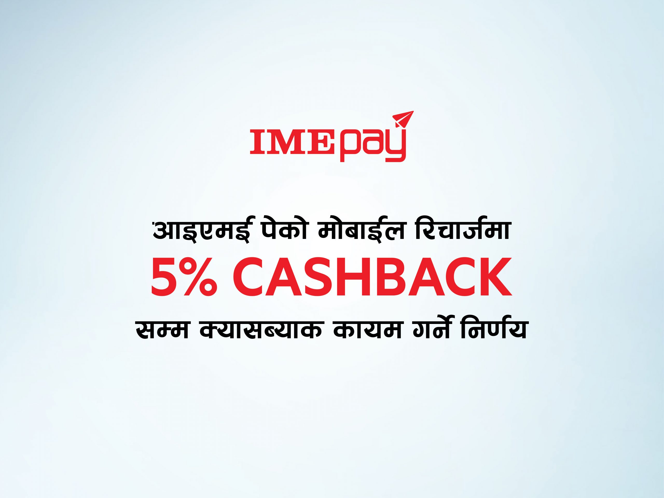 ‘आइएमई पे’ को मोबाईल रिचार्जमा ५ प्रतिशतसम्म क्यासब्याकको निरन्तरता