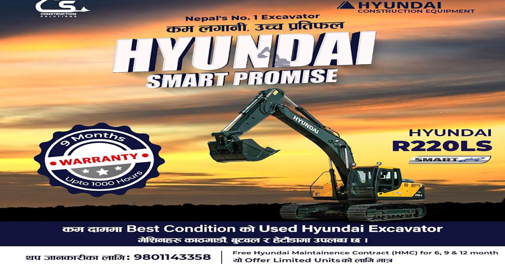 हुण्डाई कन्स्ट्रक्सनको ‘स्मार्ट प्रमिस अफर’, सुपथ मूल्यमै हेभी एक्जाभेटर