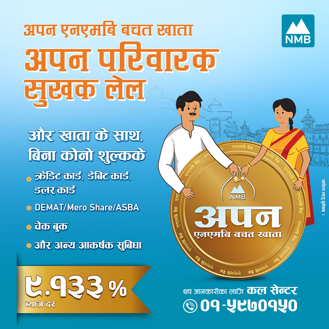 एनएमबि बैंकको “अपन एनएमबि बचत खाता” मा उच्चतम ब्याज दर