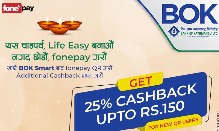 पर्वमा बैंक अफ काठमाण्डूको २५ प्रतिशतसम्म नगद फिर्ता योजना