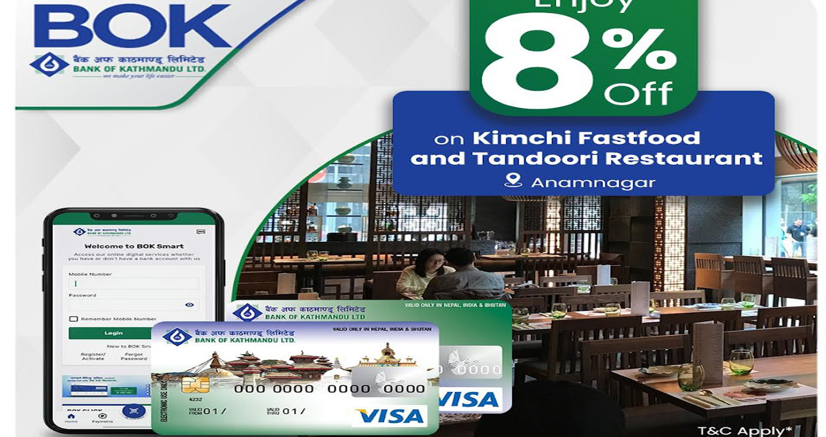 बैंक अफ काठमाण्डूका ग्राहकलाई किम्ची रेस्टुरेन्टमा छुट