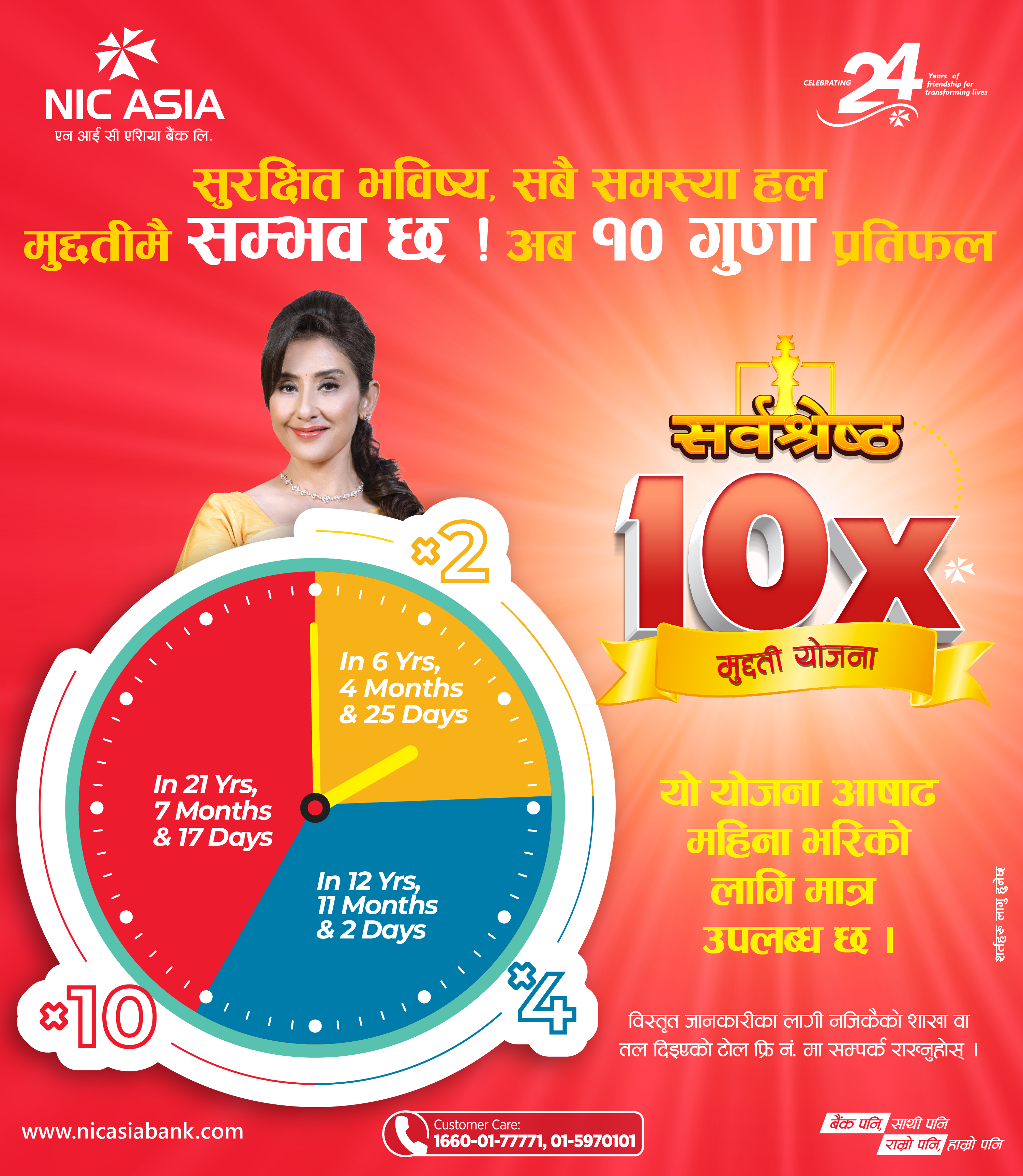 ‘एनआईसी एशिया सर्वश्रेष्ठ १० गुणा मुद्दती योजना’ मा निक्षेपकर्ताले निक्षेप रकमको १० गुणासम्म रकम पाउने