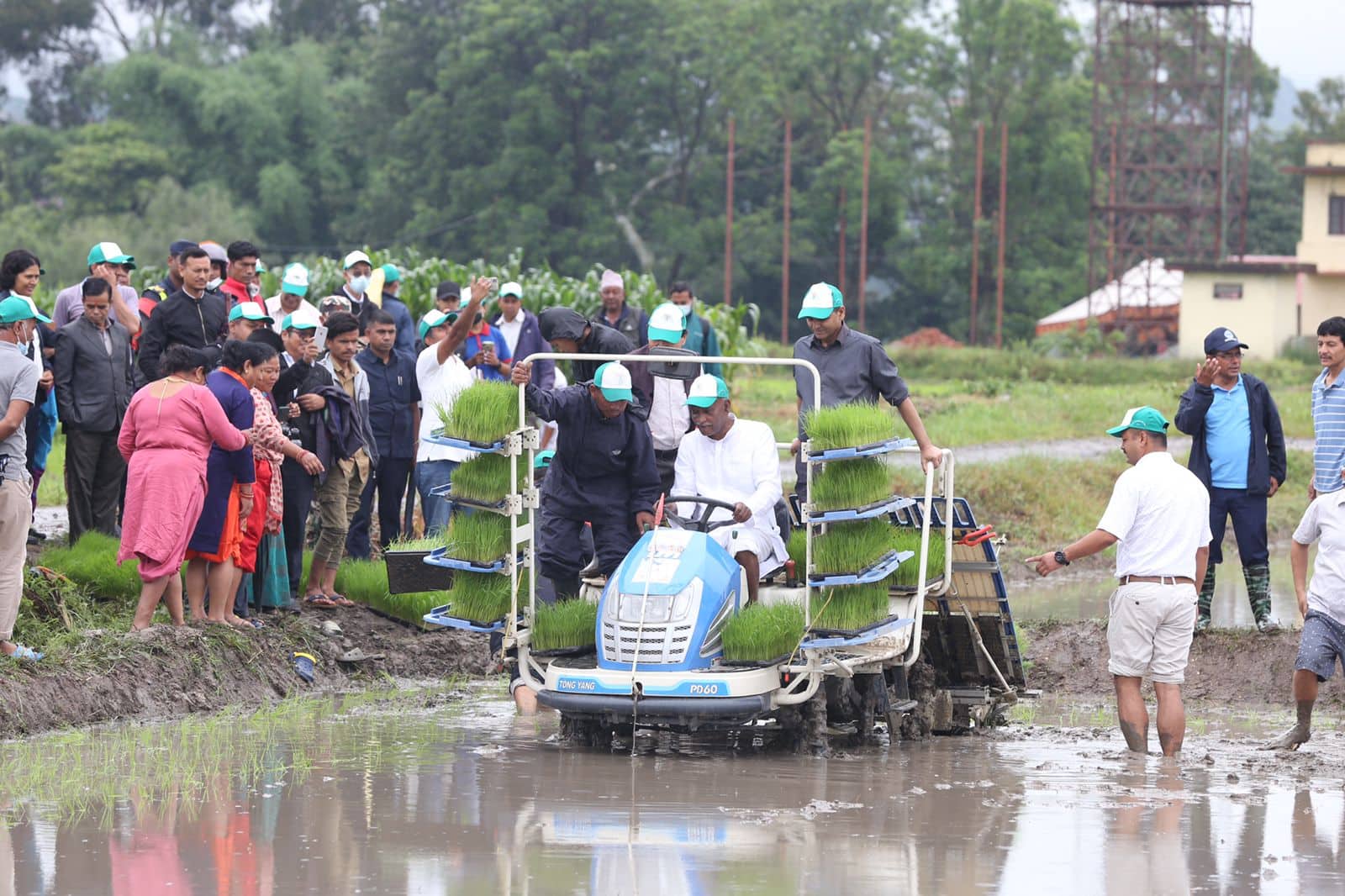 राष्ट्रिय धान दिवस : कृर्षि मन्त्रीले यसरी रोपे मेसिनबाट धान (फोटोफिचर)