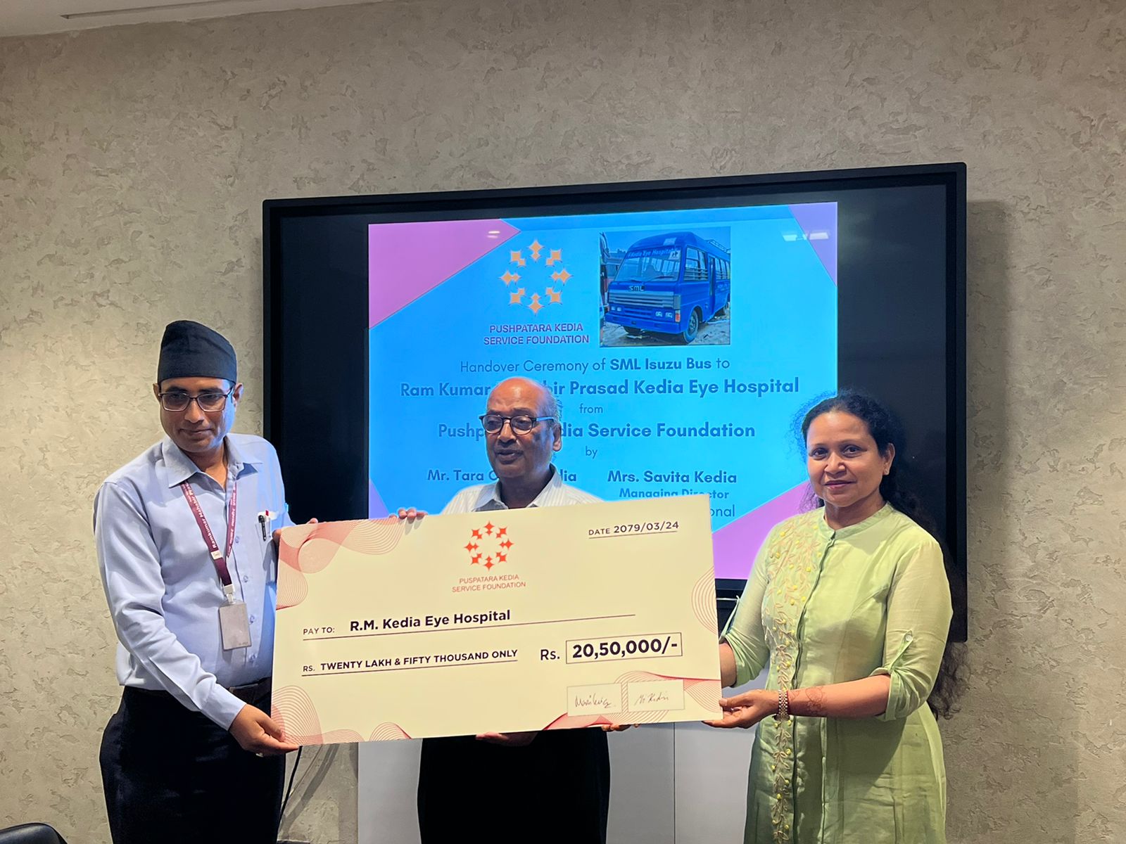 पुष्पतारा केडिया सेवा फाउण्डेशनद्धारा आँखा अस्पताललाई बस हस्तान्तरण