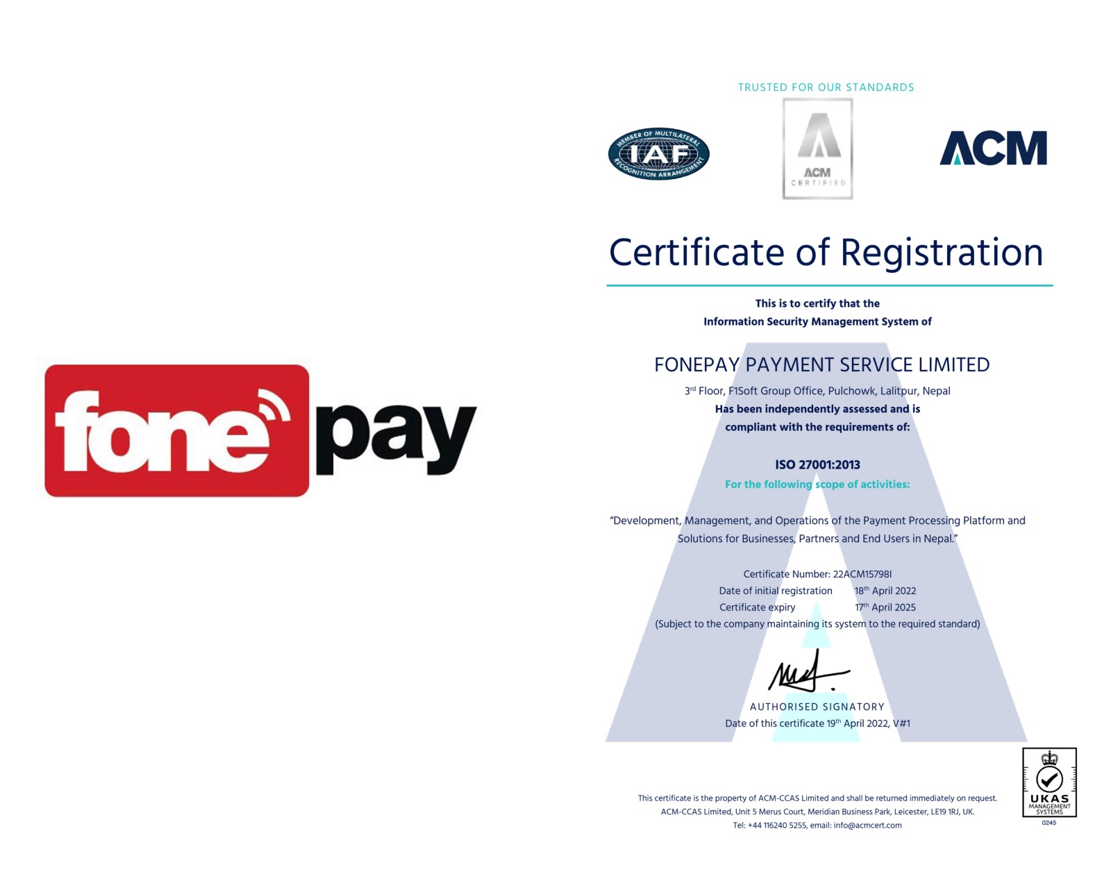 फोनपे आइएसओ २७००१ः२०१३ बाट प्रमाणिकरण