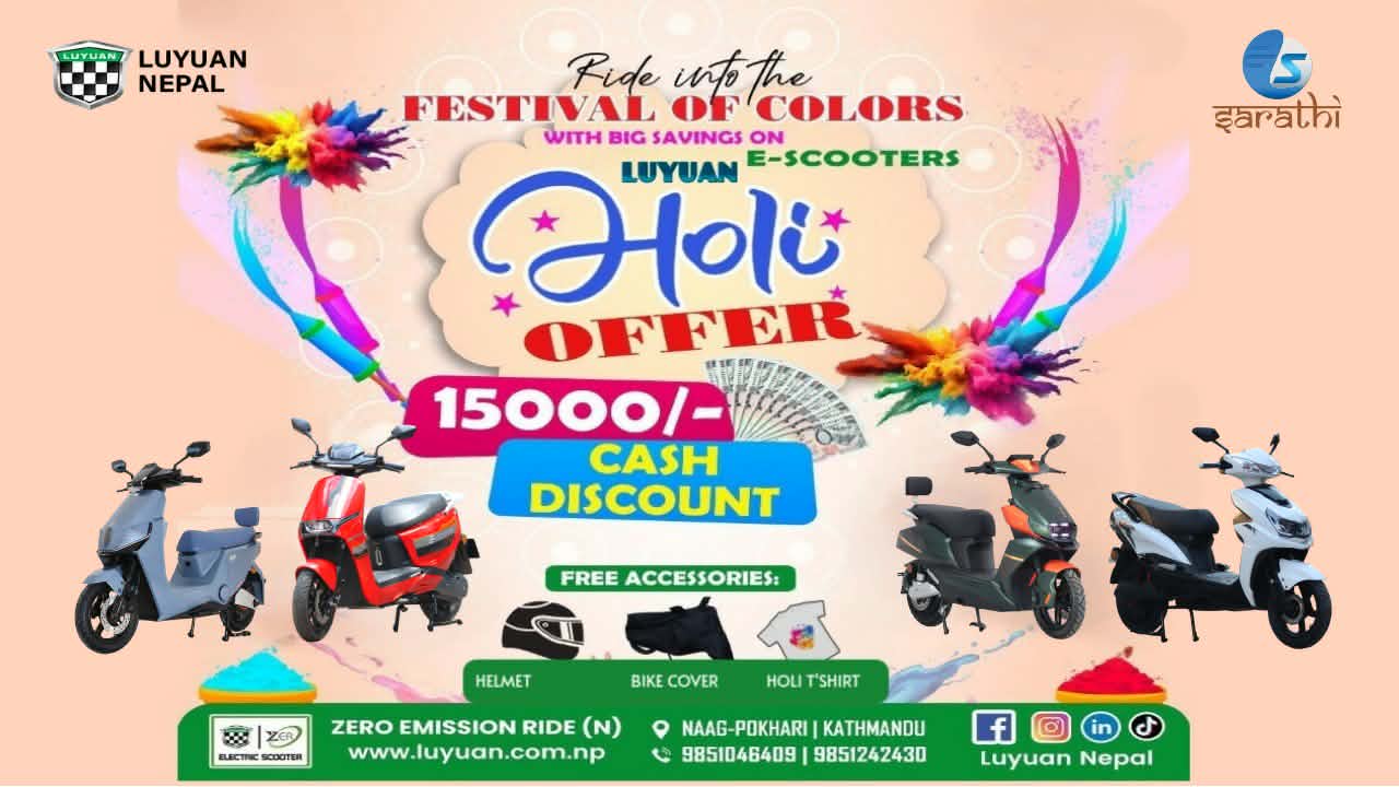 लुयान नेपालकाे होली अफर : इलेक्ट्रिक स्कुटरमा १५ हजारसम्म नगद छुट