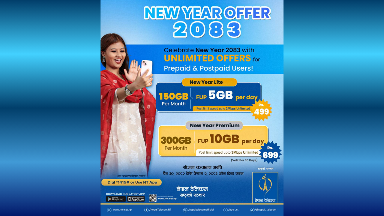नेपाल टेलिकमले ल्यायो नयाँ वर्षको अवसरमा ‘न्यु इयर लाइट र न्यु इयर प्रिमियम’ अफर