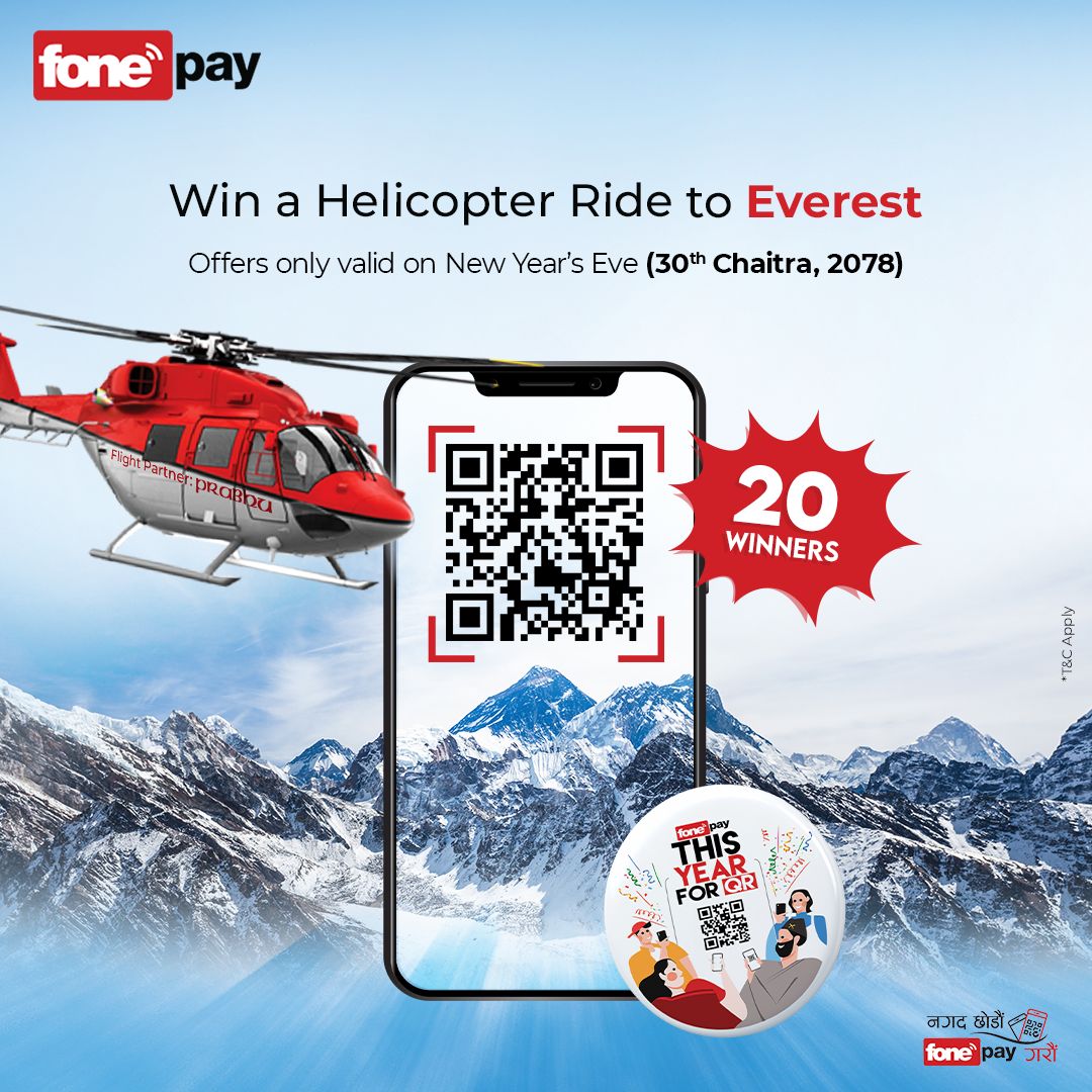 न्यु इयर इभमा फोनपेको अफर, २० जनाले हेलिकप्टरमा सगरमाथा घुम्न पाउने
