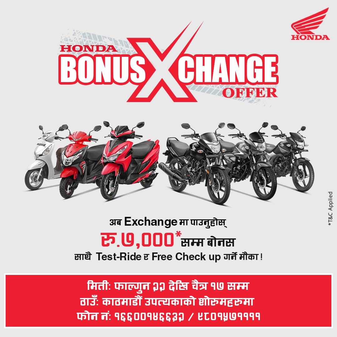 काठमाडौंका विभिन्न ठाउँमा होण्डाको एक्स्चेन्ज क्याम्प