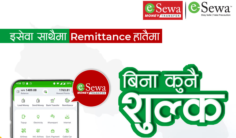 इसेवा वालेटबाट बिना शुल्क रेमिट्यान्स पठाउने सुविधा