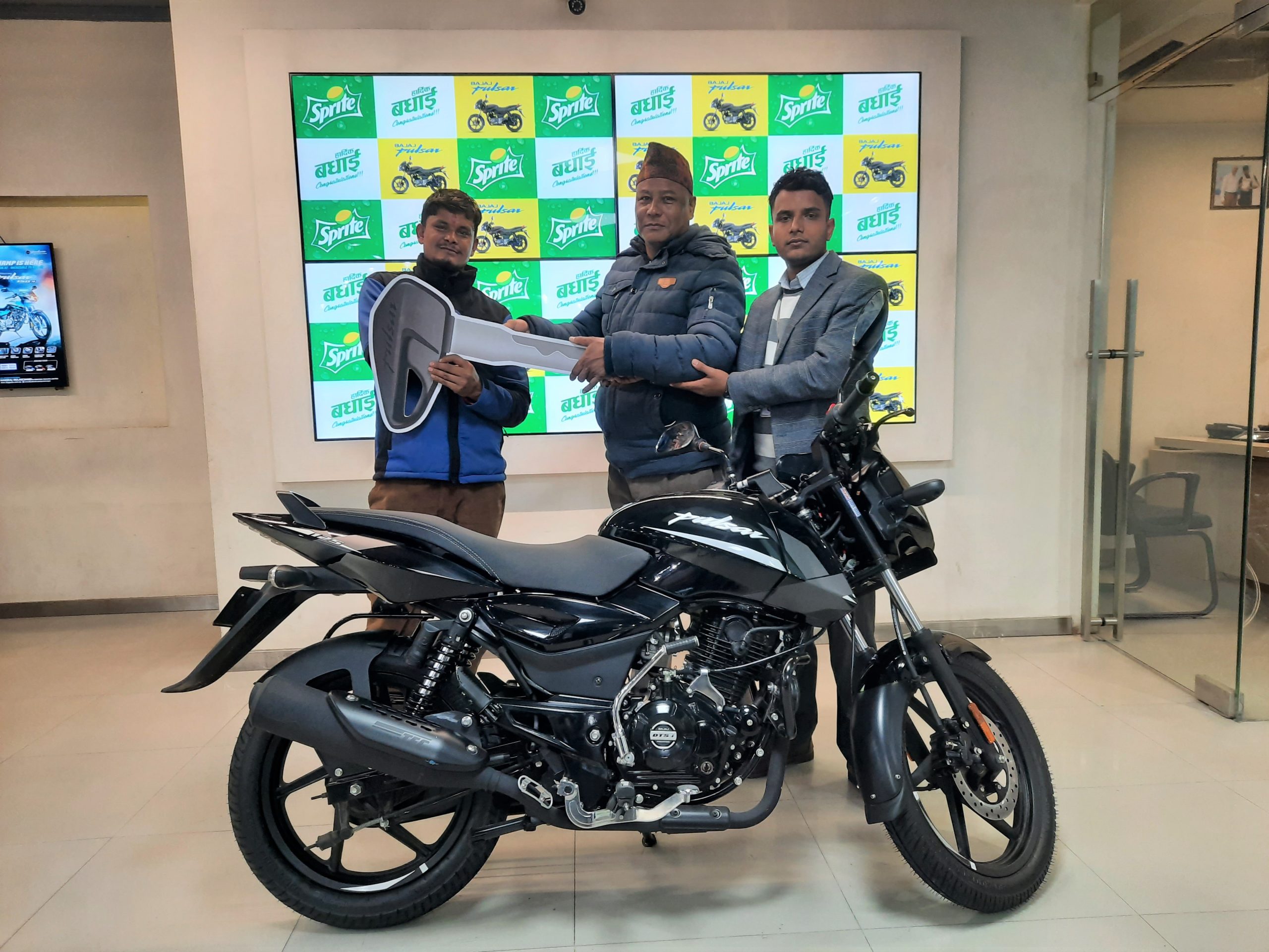 बजाज शोरुम स्प्राइट प्रोमा विजेता तीन जनालाई मोटरसाइकल हस्तान्तरण