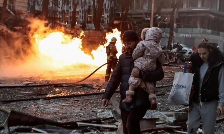 Russian strikes on Kyiv kill one, school burning: officials