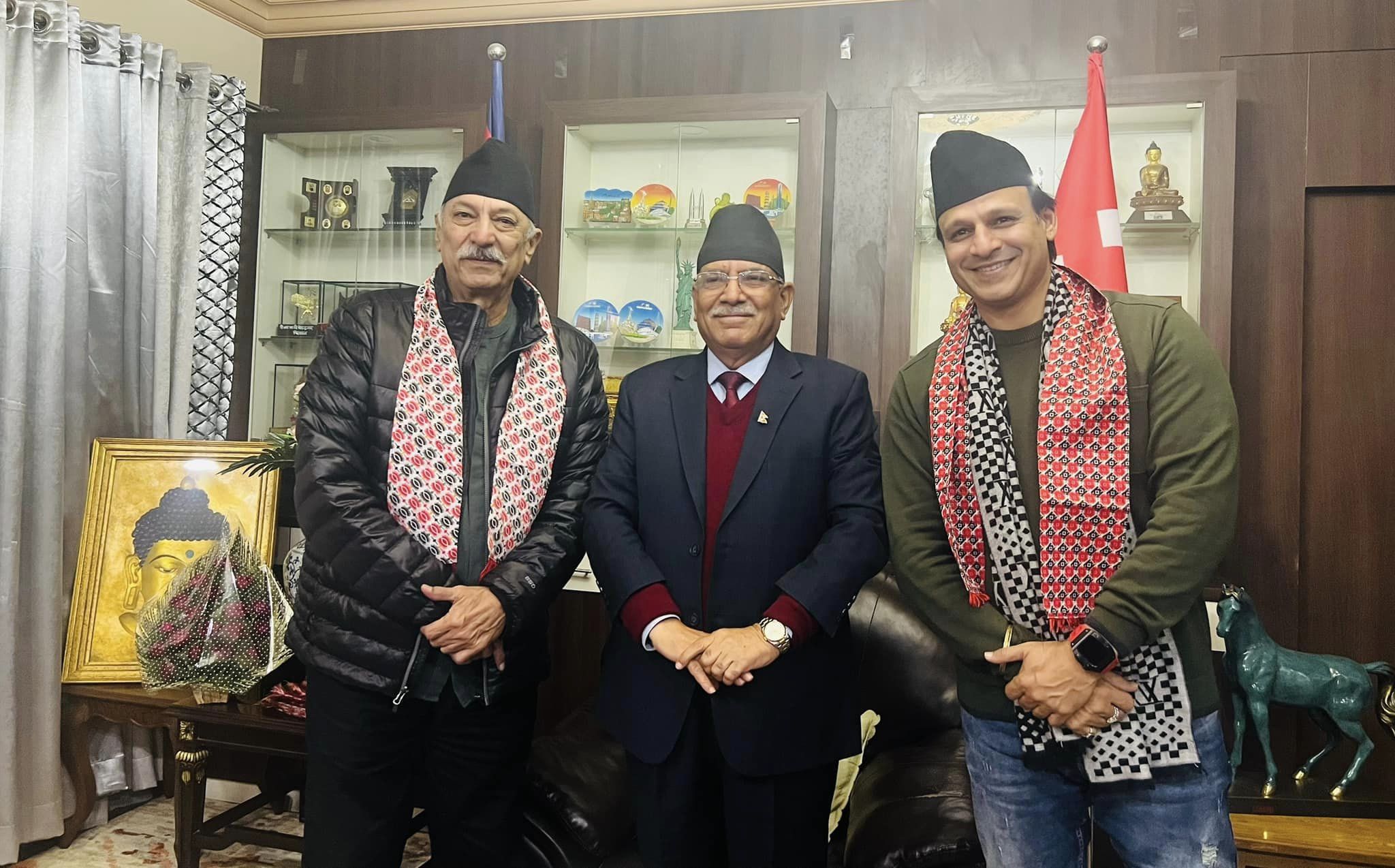 प्रचण्डलाई भेट्न पुगे बलिउड अभिनेता ओबराय