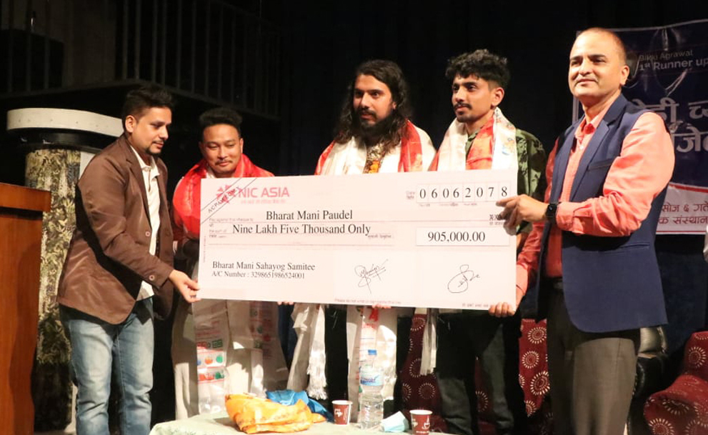 कमेडी च्याम्पियन भरतमणिलाई नौ लाखको चेक