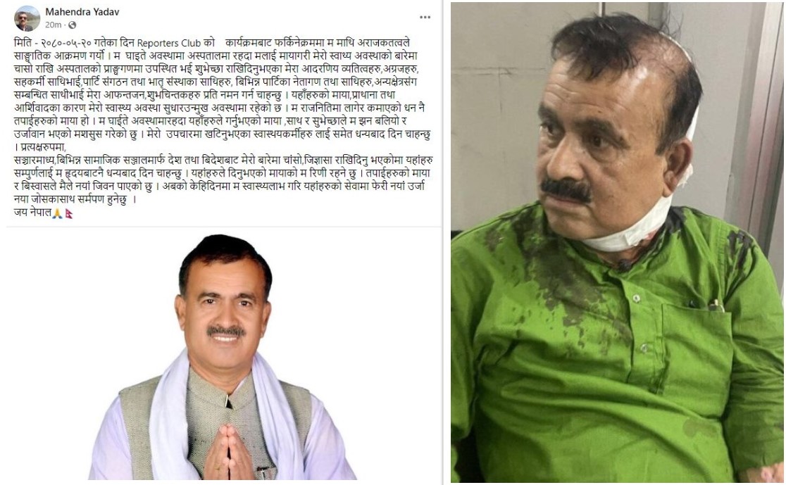 अराजक तत्वको सांघातिक आक्रमणबाट बचेर नयाँ जीवन पाएको छुँ : सहमहामन्त्री यादव