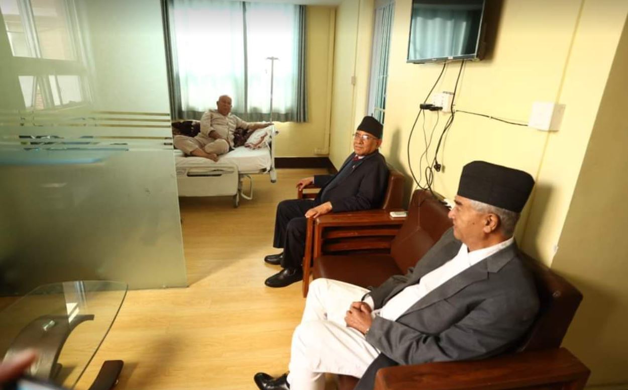 प्रधानमन्त्री देउवा र प्रचण्ड पुगे माधव नेपाललाई भेट्न