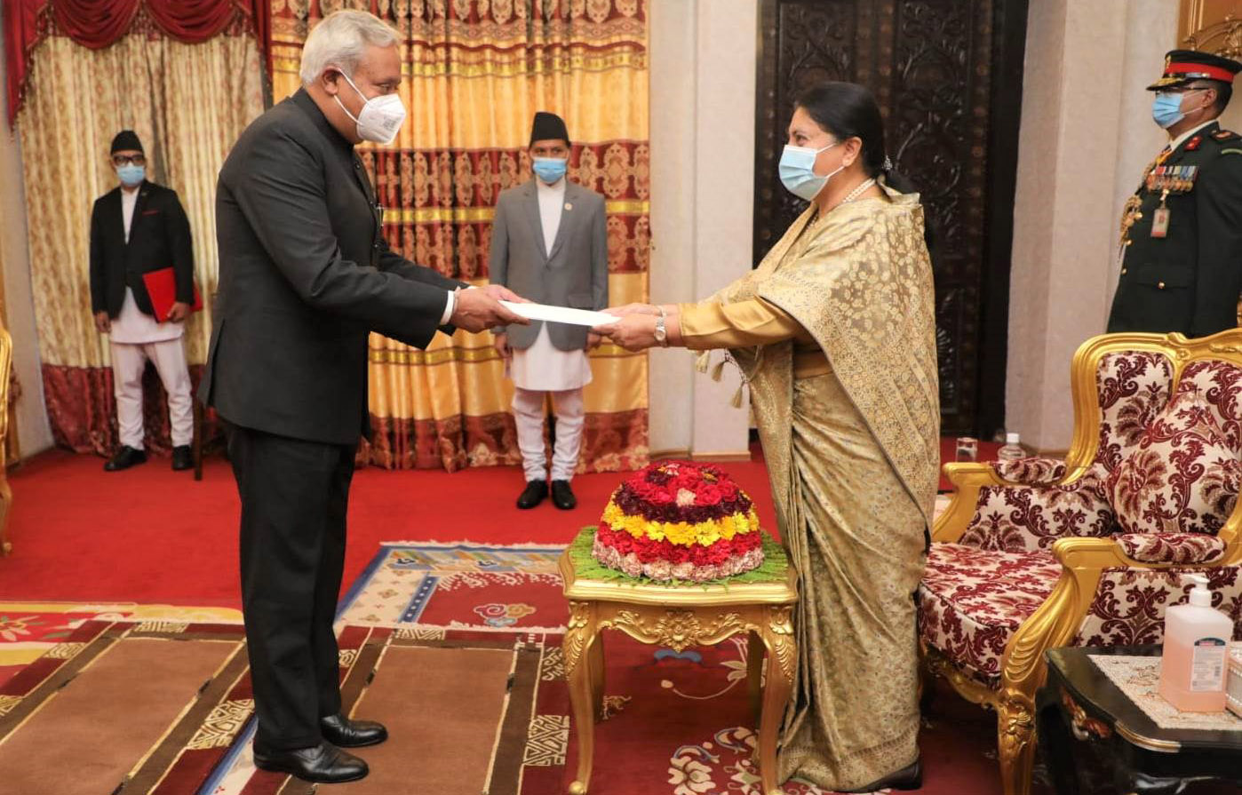 राष्ट्रपतिसमक्ष भारतीय राजदूतद्वारा प्रमाण पत्र पेश