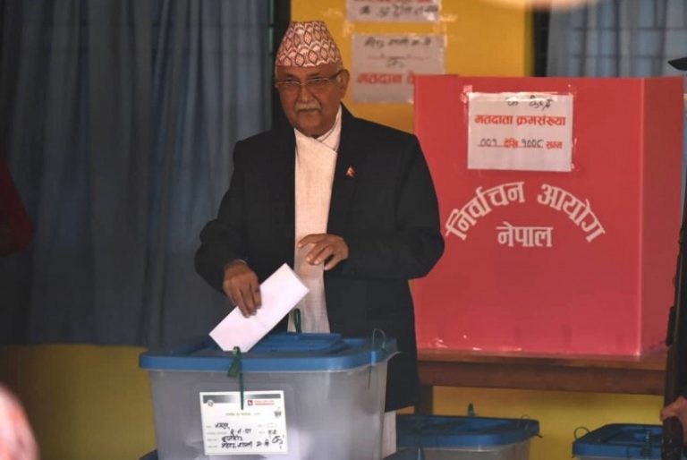 मतदान गर्दै ओलीले भने-‘देश मूलतः दुई दलीय प्रणालीतर्फ जाने देखियो’