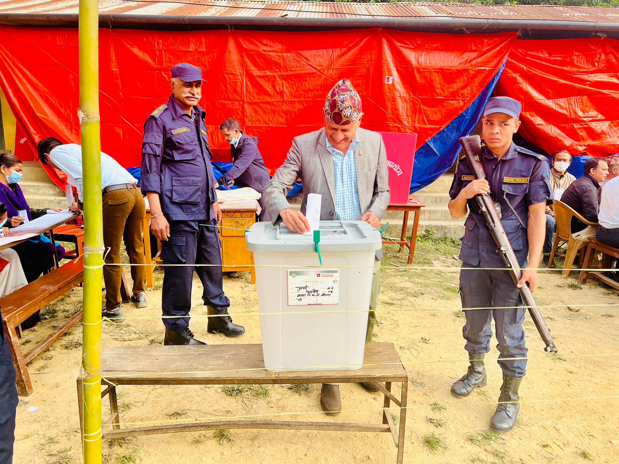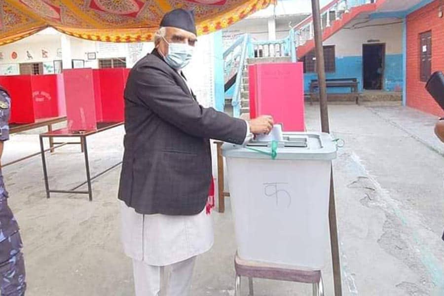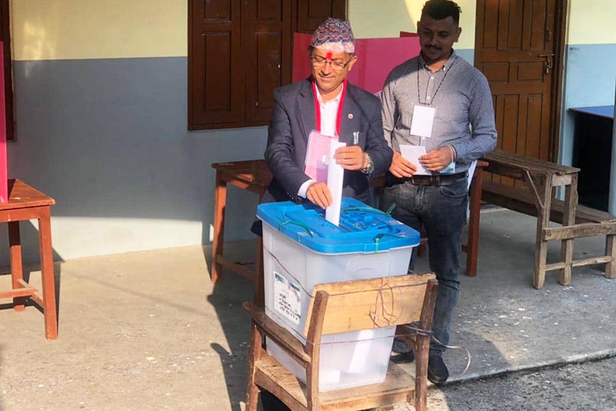 एकिकृत समाजवादीका अध्यक्ष माधव नेपालद्वारा मतदान