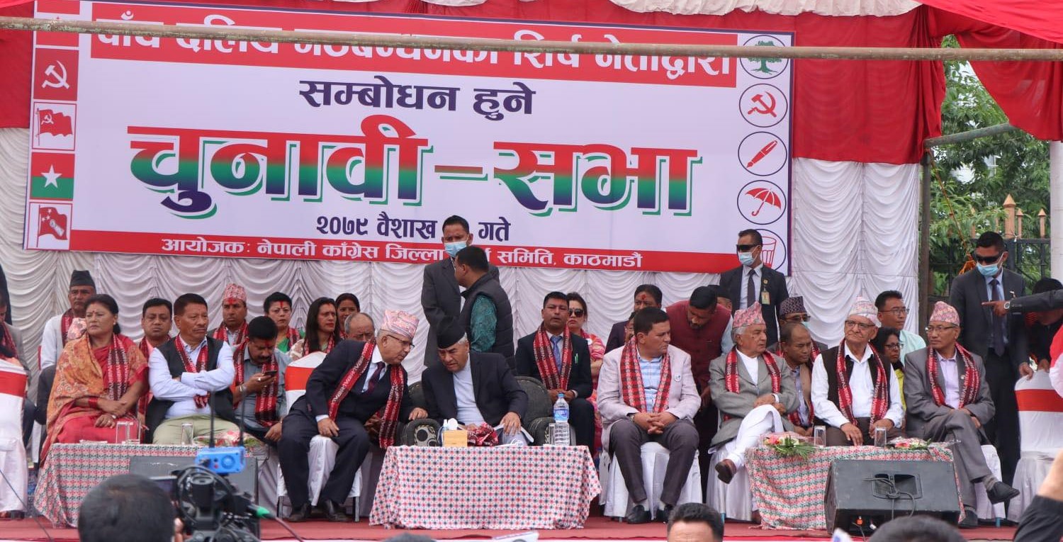 सत्ता गठबन्धनले आज काठमाडौंको रत्नपार्कमा चुनावी सभा गदै