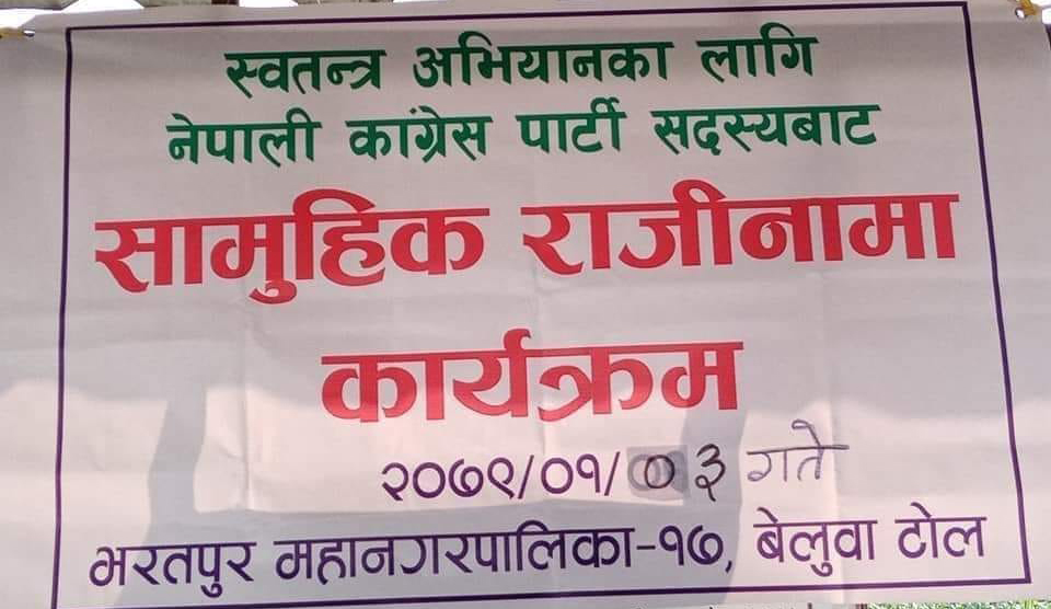भरतपुरका ५० जना कांग्रेसी नेता कार्यकर्ताले दिए राजीनामा