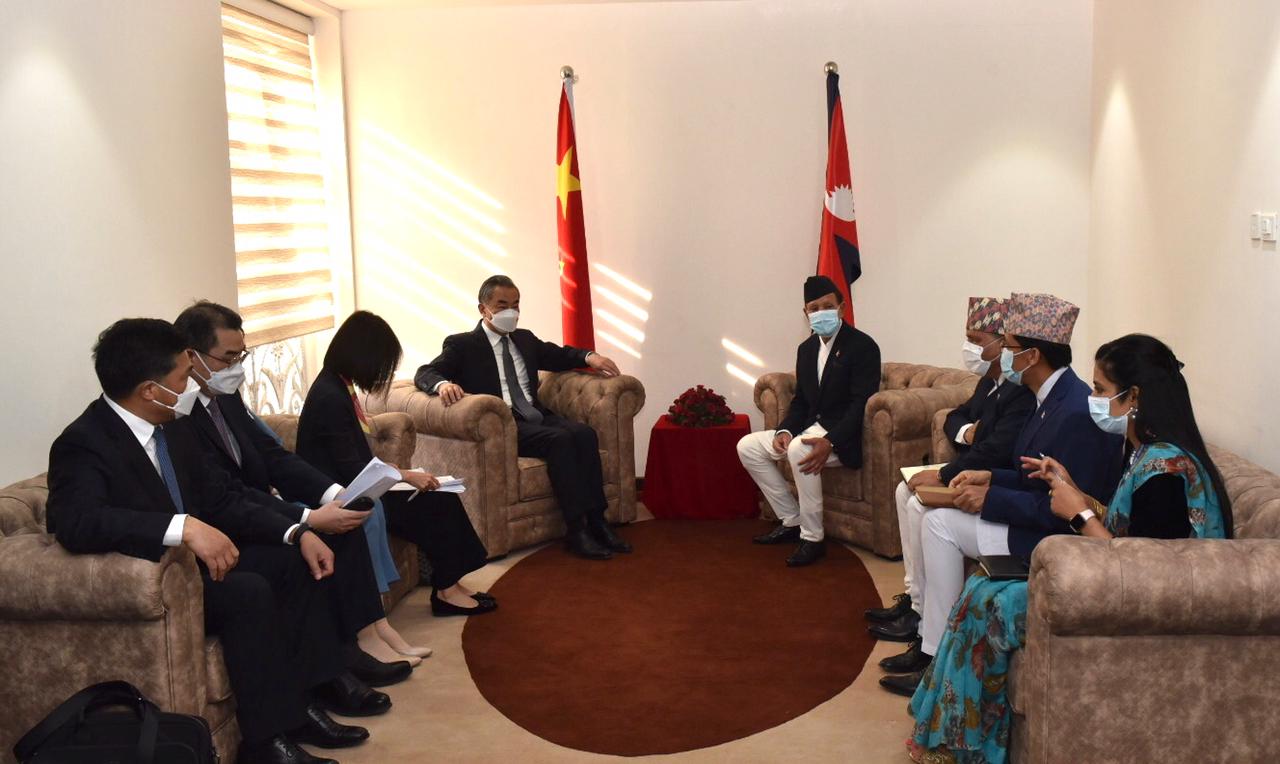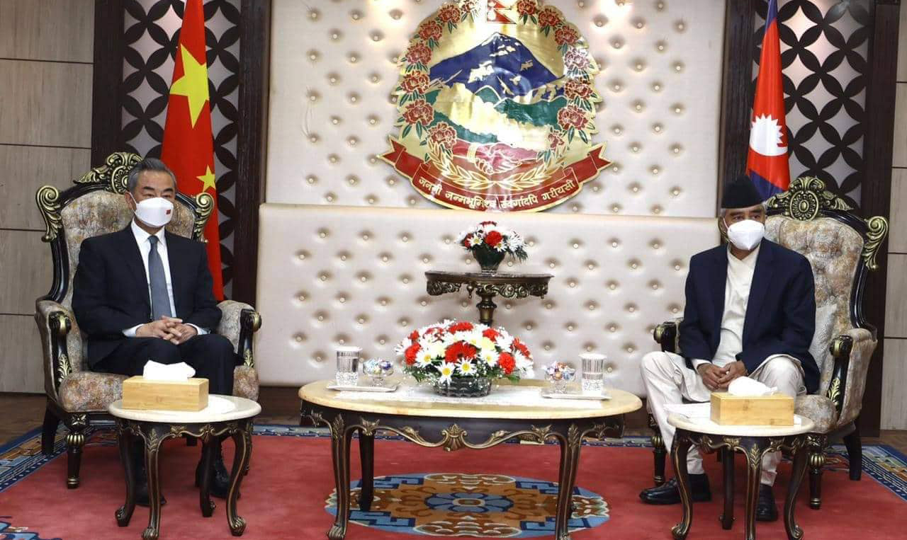प्रधानमन्त्री देउवा र चिनियाँ विदेशमन्त्री वाङबीच भेटवार्ता