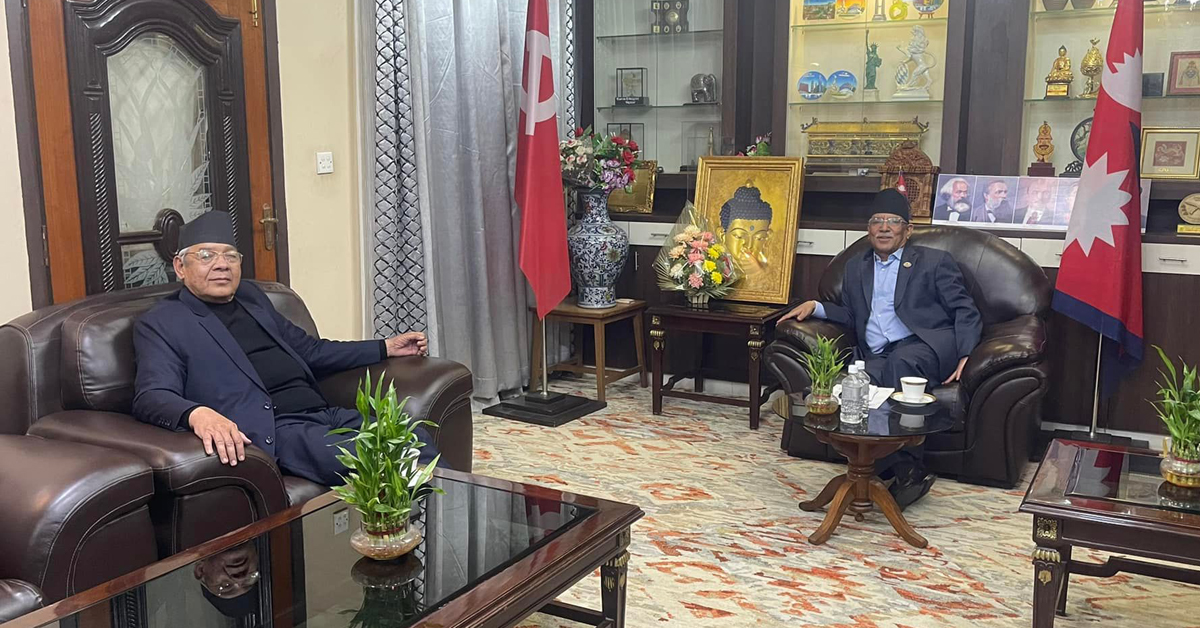 प्रचण्ड-माधव पालैपालो देउवा भेट्न बालुवाटारमा