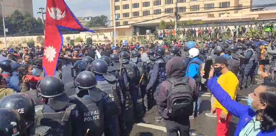 प्रहरीद्वारा अश्रु ग्यास प्रहार, नयाँबानेश्वर क्षेत्र तनावग्रस्त