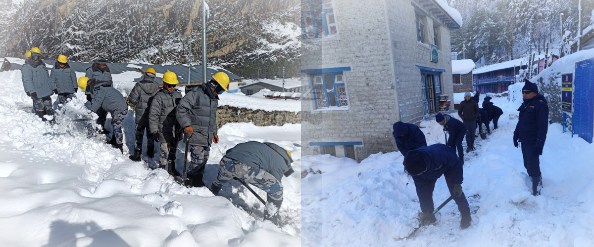 हिमपातले मनाङमा सडक तीन दिनदेखि अवरुद्ध